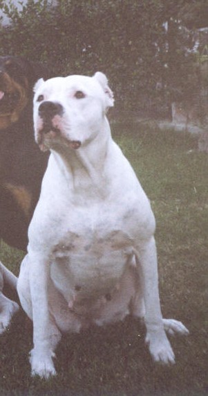 15 mesačná sučka s veľmi typickou hlavou, príkladne predvedená, korektný chrup, správny pigment, výrazný krk, dobrý chrbát, prevýšená zadná partia, správne uhlená obzvlášť hrudné končatiny, priestranný hrudník.