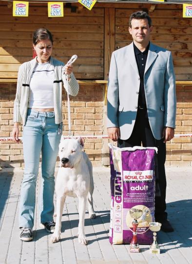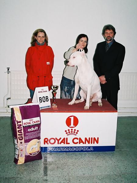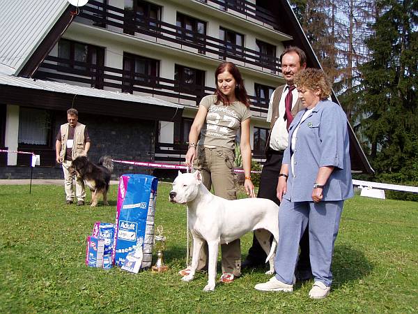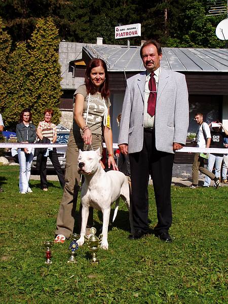 Pekná fena, odpovedajúca svojej triede, výborná kondícia, správne predvedená, pekná hlava, správne priľahlý pysk, dobré oko, štandardný krk, správne formovaná vrchná línia, priestranný hrudník, primerane uhlené končatiny, dobrá mechanika pohybu.